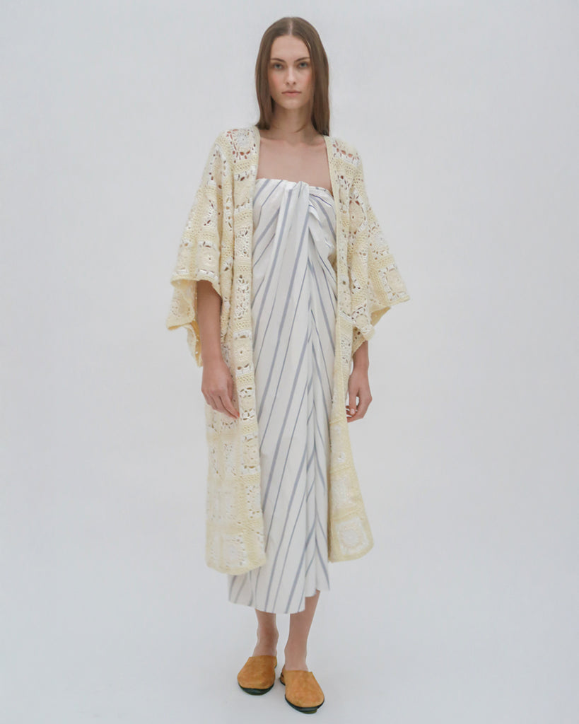 PULL ON TWIST FRONT MAXI SKIRT - WIDE STRIPE COTTO